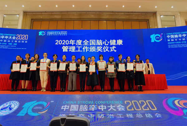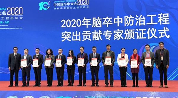 王丽华教授(左4)荣获“2020年脑卒中防治工程突出贡献专家”奖