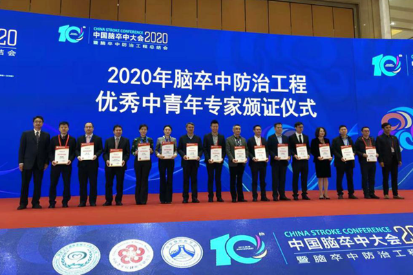 哈医大二院卒中中心卢晓宇副主任医师(左6)荣获“2020年脑卒中防治工程优秀中青年专家”荣誉称号