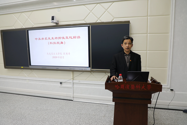 马克思主义学院张英涛教授以《中美关系发生转折性变化解读(科技视角)》为题,李中华教授以《习近平新时代中国特色社会主义思想及其历史地位》为题,黄永柏教授以《习近平思想的立场、观点和方法》为题,依次授课。他们将宪法知识同学习贯彻习近平新时代中国特色社会主义思想、同学习贯彻党的十九届五中全会精神、同社会主义核心价值观、同疫情防控相关法律法规、同学习张庆伟同志为高校宣讲五中全会精神的讲话紧密结合起来,深刻阐释十九届五中全会精神和习近平法治思想的内涵和意义。