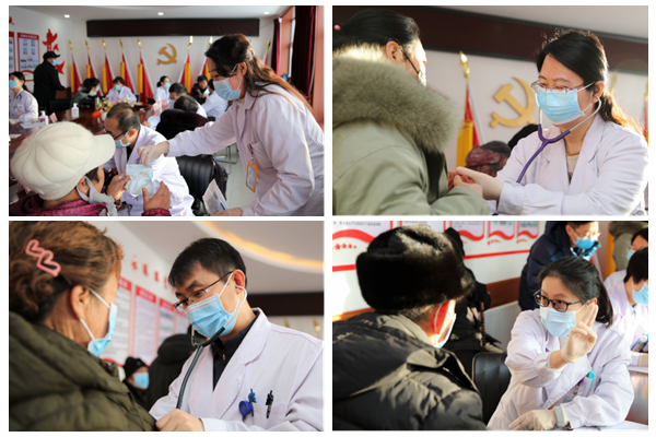 哈医大一院助力脱贫攻坚志愿医疗服务队不仅迎着数九的寒风在夜色中挨家挨户送上药品和温暖,还专门为附近村屯的村医、乡医进行高血压、冠心病、糖尿病等慢性病、老年病的诊治培训,并为村民们进行健康知识普及和康复指导。