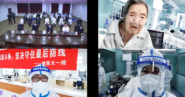 雷海潮视频探望正在黑龙江省新冠肺炎救治中心重症病区接受治疗的89岁的刘俊先老奶奶,询问她的治疗和住院情况,叮嘱老人家一定要听医生的话,好好配合治疗,争取春节前痊愈出院,回家过年。
