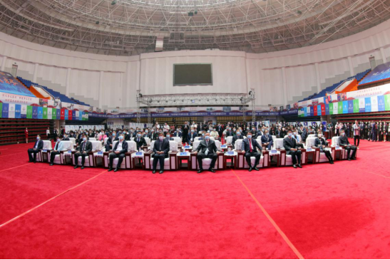 与会领导及嘉宾共同启动了第十七届黑龙江省“挑战杯”大学生课外学术科技作品竞赛决赛开幕式,宣布第十七届工银融e联“挑战杯”黑龙江省大学生课外学术科技作品竞赛终审决赛正式开幕。