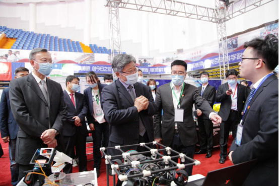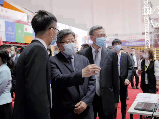 孙东生、张斌、苑芳江等领导现场观摩了各高校的参赛作品项目。
