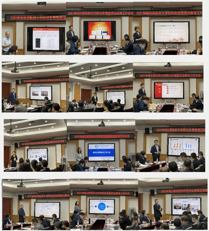 研究生院常务副院长金焰主持会议。地病中心业务处处长高彦辉、基础医学院副院长李晓波、公共卫生学院副院长武丽杰、药学院副院长潘振伟、生物信息科学与技术学院副院长肖云、人文社会科学学院副院长朱洪岩、马克思主义学院副院长李中华、大庆校区研究生处处长邹路琦、第一临床医学院副书记迟秋君、第二临床医学院副院长吴亚军、第三临床医学院副院长张清媛、第四临床医学院副院长吴江分别根据目前学院研究生总体情况、思政工作人员规模、工作思路、工作举措及成效以及存在的主要问题及建议进行汇报交流。