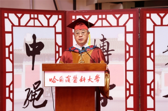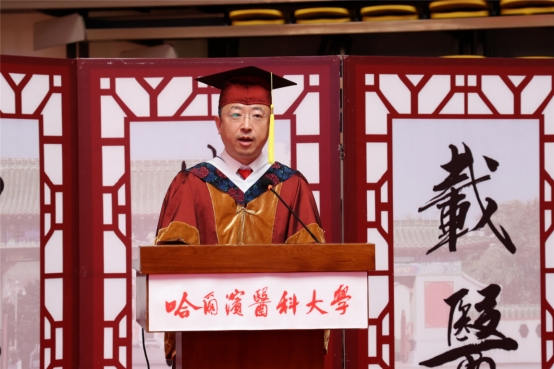 张学感慨的对同学们讲,在哈医大求学的这几年里,同学们筑梦于心、逐梦前行,收获了知识和能力,经历了磨练和考验,结下了深厚的师生情谊,留下了许多难忘回忆。