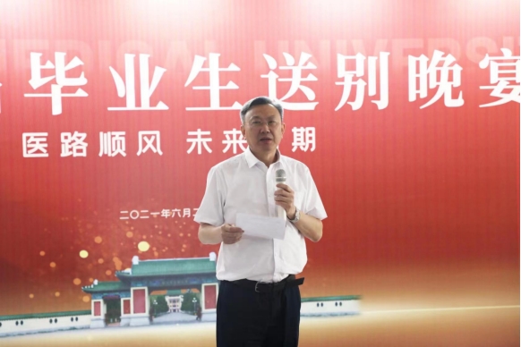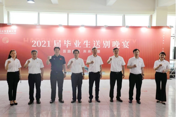 张斌书记代表全校教职员工向圆满完成学业的同学们表示热烈祝贺!他满怀深情地和同学们回顾了美好的大学时光。他说,校园里处处留下了同学们勤奋好学、追求真知的影子,取得了许多好成绩,你们是哈医大的骄傲和未来!他表示,中国共产党成立100周年华诞即将到来,希望同学们爱党爱国爱民,锤炼品德,勇于创新,脚踏实地,在实干中成就事业。他殷殷嘱托同学们要继续发扬哈医大“政治坚定、技术优良”的光荣传统,秉承“木直中绳、博学载医”的校训,传承科学、红色、开放的三大基因,把哈医大精神带到今后的工作中,为哈医大争光添彩。他强调,与毕业生一起包饺子、吃饺子已经成为学校的一个传统和一种文化,满怀学校对同学们的期待与祝愿,希望大家能永远记住学校的味道、学校的情怀,增强母校情结,常回家看看!母校期待同学们成功的喜讯!祝同学们一帆风顺,前程似锦!