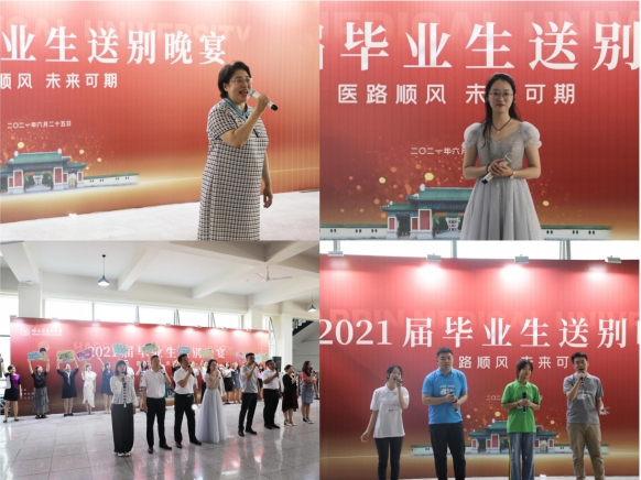 送别晚宴由学工部(学生处)部(处)长周艳娟主持。302名本科生、453名研究生和9名留学生共764名同学参加晚宴。学生处、研究生院、国际教育学院、后勤管理处工作人员为此次晚宴做了大量准备工作。党办、教务处、招生就业处、医务处、团委等有关部处负责人参加晚宴。