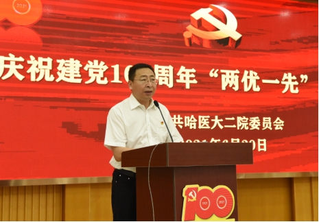 哈医大二院党委书记王永晨在讲话中表示,中国共产党的百年历史,是一部不断奋斗、与时俱进、为民谋福祉的历史,是用鲜血、汗水、泪水写就的,充满苦难和辉煌、曲折和胜利、付出和收获,是最生动最有说服力的教科书。他回顾了自新冠疫情发生至今,在学校党委坚强领导及坚定支持下,院党委带领全院统一思想、凝心聚力,取得的抗疫阶段性胜利及最终实现的“患者零漏诊、医务人员零感染、院内零传播”的抗疫成果。他表示,这与党员同志们身先士卒,发挥先锋带头作用,与全院教职工齐心筑牢保卫群众生命健康防线的实际行动密不可分。