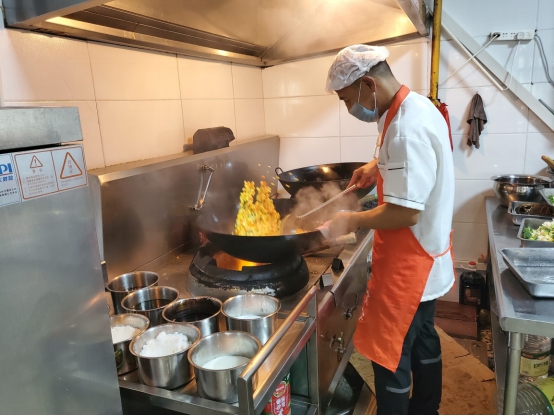 后勤人一直都在。饮食服务中心一层清真档口及二层基本大伙为暑期留校师生提供就餐服务,安装棚顶吊扇,忙碌在操作间、售卖区,严把食品安全,确保暑期工作日中餐供应,保障开学配送隔离餐。设备检修、盘点清查,为开学开餐做好全面准备。