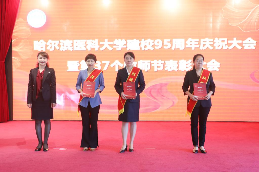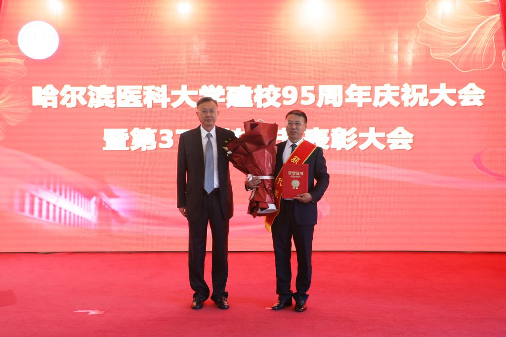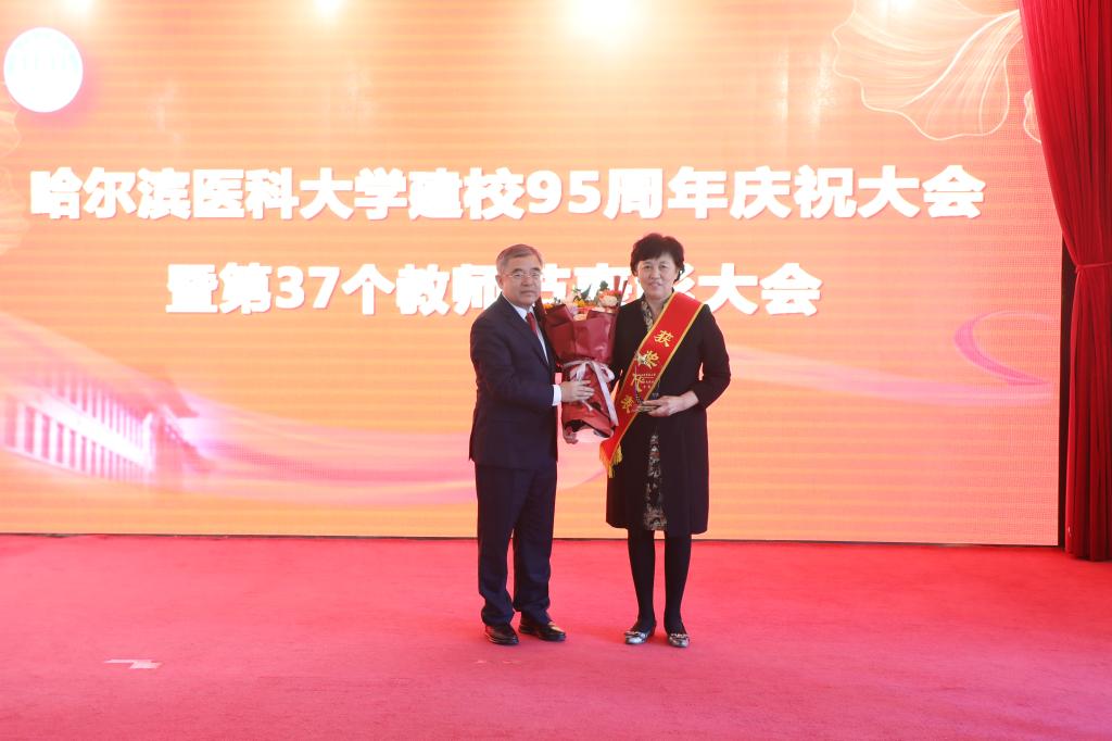 张学校长为哈尔滨医科大学2021年教学成就奖获得者李霞教授颁奖