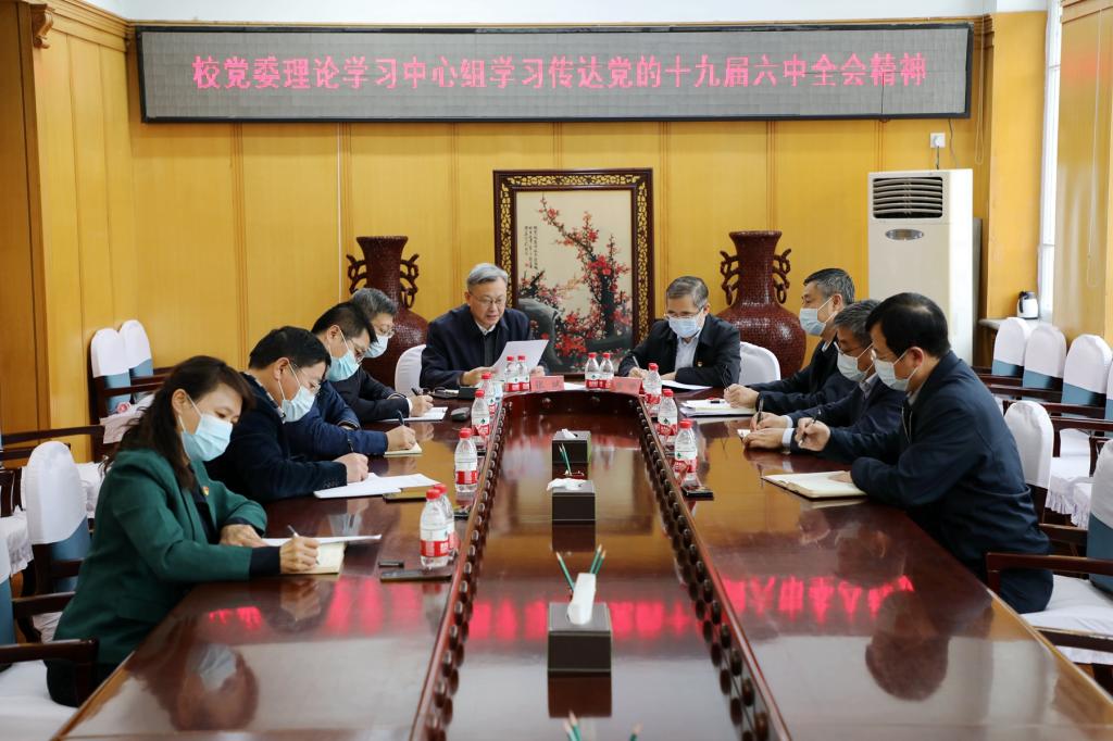 11月23日下午,学校党委理论学习中心组在主楼二楼大会议召开会议,进一步专题学习党的十九届六中全会精神。学校党委书记张斌主持会议。