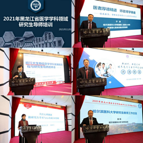 开幕式后,中国医学科学院药物研究院蒋建东院士、复旦大学汪玲教授、北京大学崔爽教授、哈尔滨医科大学研究生院金焰教授、第二临床医学院于波教授、生物信息科学与技术学院李霞教授、第一临床医学院孙备教授、心理与行为研究中心杨艳杰教授分别作了题为《协和教学,育人为先》《基于健康中国建设成为优秀研究生导师》《大健康视角下的医学专业学位研究生教育》《哈医大研究生教育工作汇报交流》《医者厚德精进师者博学笃行》《哈医大生物信息学科发展与研究生培养的体会》《新时代、新需求下培养高质量医学研究生的点滴体会》和《关注心理健康,做研究生学术与心灵成长双导师》的精彩报告,参加培训的导师代表与讲座嘉宾进行了交流互动。