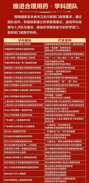 据悉,“合理用药·中国行动”活动由国家卫健委医政医管局指导、健康报社主办。2021年初,健康报社启动了2021年全国合理用药典型经验和创新案例征集活动。经过“合理用药·中国行动”组委会初评与终评两轮评审,评选维度共5个指标,包括创新性、影响力、惠民性、多学科联动性、可复制推广性,最终于2022年1月10日推出“推进合理用药·政府组织”“推进合理用药·学科团队”“推进合理用药·年度人物”“推进合理用药·医药协同”“推进合理用药·学术活动”系列榜单。