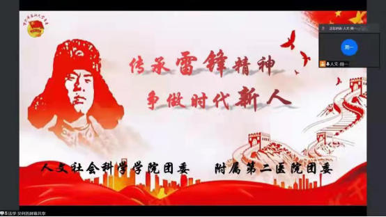 第二临床医学院团委联合人文社会科学学院团委线上举行主题为“传承雷锋精神,争做时代新人”的保健科普与基层普法活动,收听人数超900人。
