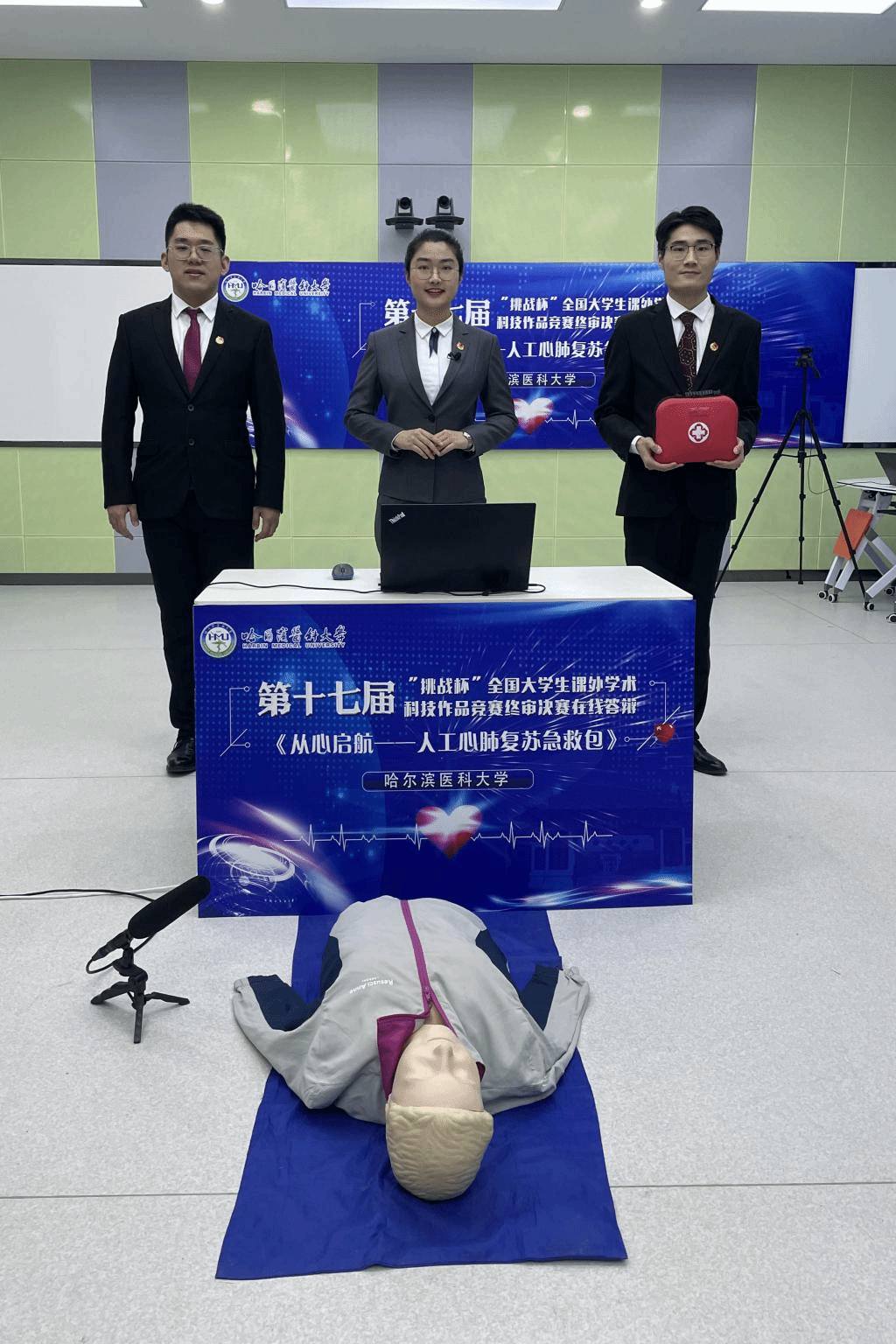 3月23日至25日,获得二等奖的赵启瑞团队在外语学馆智慧教室完成为期3天的高强度集训。校党委副书记袁重胜、校团委书记王曦就项目的终审答辩过程进行了现场指导。3月27日,团队所创设的“从心启航——人工心肺复苏急救包”项目在决赛紧张的线上评审、公开问答等竞赛环节的激烈角逐中,一路过关斩将,最终斩获二等奖。