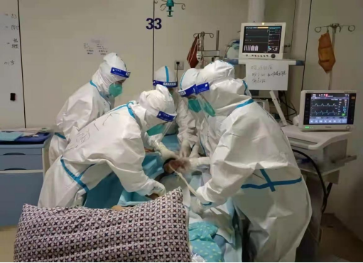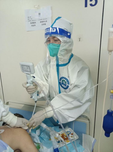 医护人员们随时观察患者的生命体征和病情变化,呼吸机患者要随时调整参数,观察异常,随时应对突发状况,比如对患者实施呼吸机、血液净化治疗、ECMO等操作。重症患者几乎无法自理,每次操作都需要多名医护人员协作完成,大家穿着防护服、戴着护目镜和手套,让很多治疗操作变得笨拙。最忙的时候,同时要进行四五个患者的操作,病房就堪称“战场”,同事们每次出舱时,被汗水浸透的内衣都同水洗一般。虽然辛苦,但我们每当看到患者病情一天天好转,就是莫大的鼓舞。
