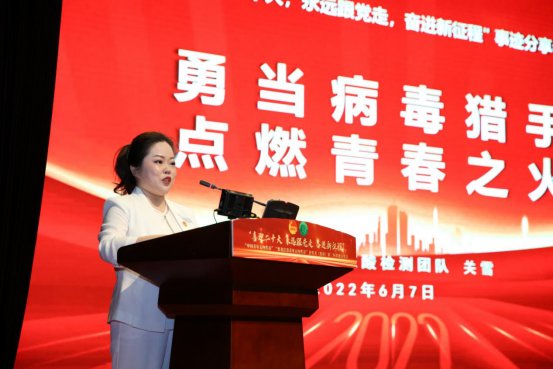 第24届“黑龙江省青年五四奖章集体”哈尔滨医科大学附属第一医院核酸检测团队代表关雪做了题为《勇当病毒猎手点燃青春之火》的主题分享。这是一支流淌着红色基因、科学基因、开放基因的战斗队伍,是全省疫情防控核酸检测的“尖刀连”,既承担着本院核酸检测工作,又肩负着省新冠肺炎救治中心的核酸检测任务。在绥棱县、巴彦县、嫩江市、黑河市及哈尔滨市发生疫情时,第一时间前往支援,总支援时长超3000小时,总检测量超千万人次,创造了仅20小时检测量超1.8万管的纪录,为龙江疫情防控作出了突出贡献,诠释了哈医大人“敬佑生命、救死扶伤、甘于奉献、大爱无疆”的崇高品格,书写着新时代中国青年的豪情壮志。