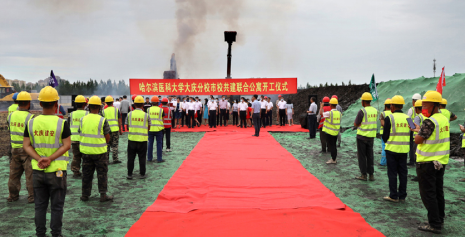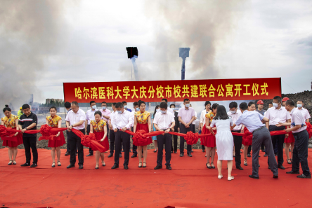 天空中细细的雨丝飘落,为酷热的天气增添了几分凉爽;飘动的彩旗、列队的人群,期待着美好时刻的到来。6月30上午9时,哈尔滨医科大学大庆校区市校共建联合公寓项目开工仪式隆重举行。