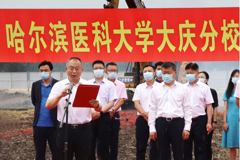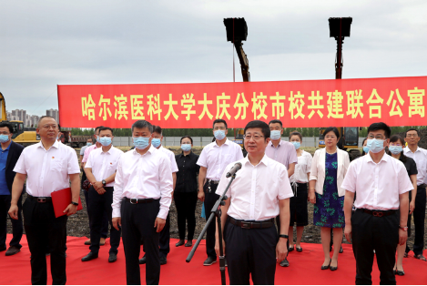 大庆市市委副书记张高成宣布“哈医大大庆校区市校共建联合公寓项目”开工,全场爆发出热烈的掌声。