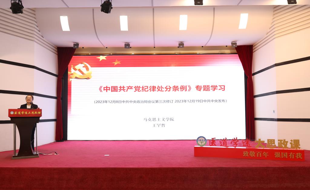 为推动党纪学习教育走深走实,引导全校大学生党员深刻认识加强党的纪律建设的重要性,深入学习贯彻《中国共产党纪律处分条例》,推动大学生党员学纪、知纪、明纪、守纪。5月23日,学校举办“医道学途 大思政课”第四场大学生党员党纪学习教育专场报告会,马克思主义学院副教授王罕哲主讲,学工部部长徐娟主持讲座,全校3400余名本研学生党员线上线下参加培训。