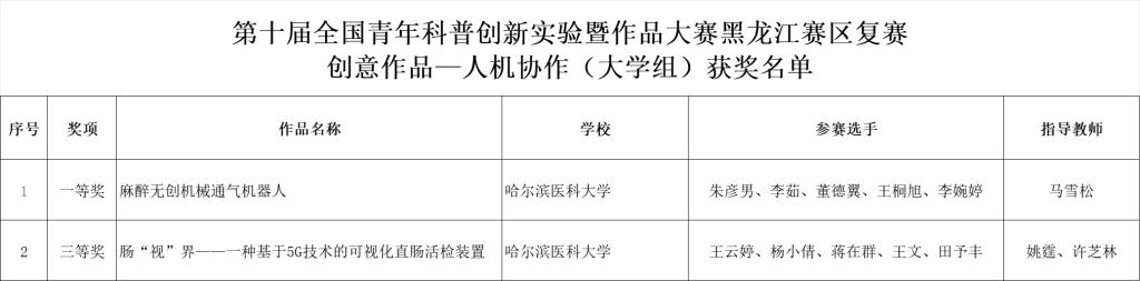 近日,在刚刚落幕的第十届全国青年科普创新实验暨作品大赛黑龙江赛区复赛中,哈尔滨医科大学参赛团队以出色的表现和卓越的创新能力,取得了令人瞩目的成绩。