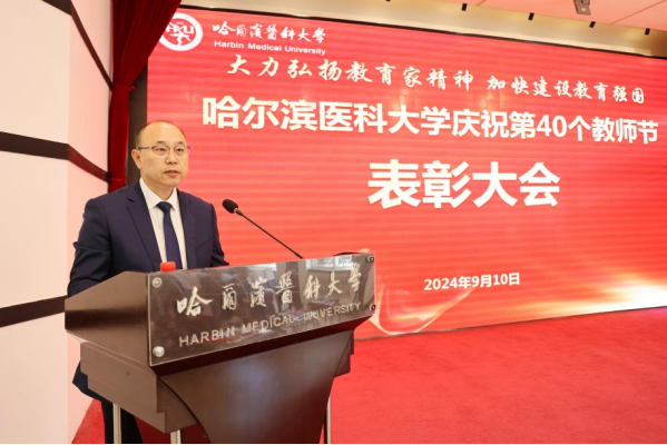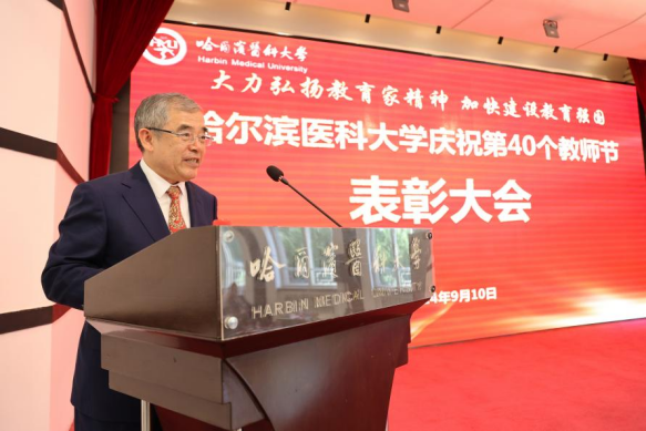 大力弘扬教育家精神,加快建设教育强国。在学校庆祝第40个教师节表彰大会上,党委书记张学代表学校发出号召,牢记为党育人、为国育才使命,始终同党和人民站在一起,以赤诚之心、奉献之心、仁爱之心扎根三尺讲台,潜心教书育人,全力培育一流人才、创造一流成果、做出一流贡献,在新时代新征程中,奋力书写好推动教育强国、科技强国、人才强国、健康中国建设的哈医答卷。