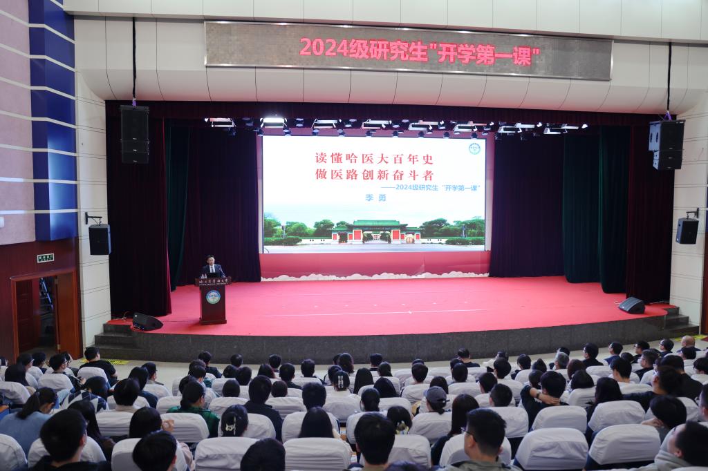 为进一步学习贯彻习近平总书记在全国教育大会上的重要讲话精神,教育引导研究生立报国强国大志向、做挺膺担当奋斗者,9月23日,校长季勇以《读懂哈医大百年史 做医路创新奋斗者》为题,为研究生新生讲授“开学第一课”。副校长许超千主持活动。