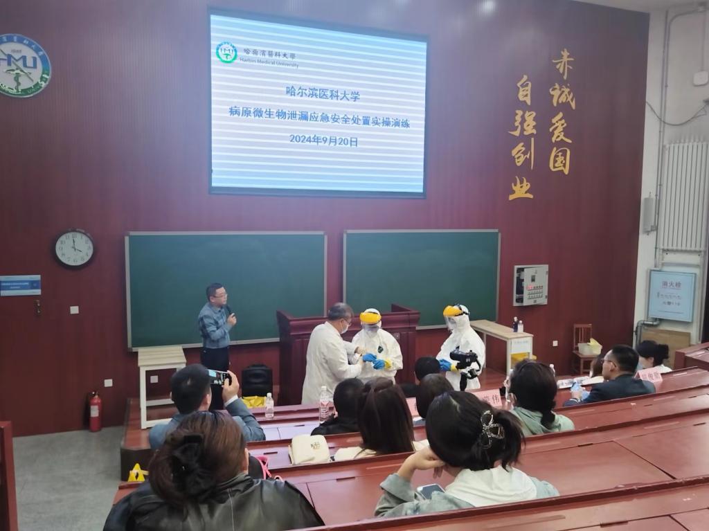 9月20日下午,我校在病原学馆伍连德大讲堂举办2024年度实验室安全知识培训与应急演练活动。副校长周钦强调实验室安全的重要性和应急演练的重要意义。