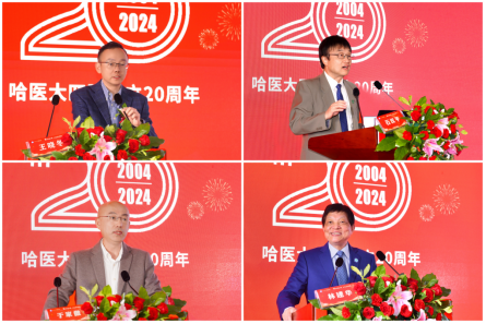 中国工程院院士、哈尔滨医科大学党委书记张学在讲话中表示,回望四院二十年的奋斗历程,无论是在艰苦创业年代,还是在发展建设时期,四院人都展现出无畏艰难的精神风貌和救死扶伤的崇高医德。近年来,四院党委在学校党委领导下,努力践行“坚持为学生学者办学立校,坚定以学术学风兴学强校”的办学理念,医疗、教学、科研各项工作稳步前进。他指出,四院要紧紧围绕高质量发展的时代主题,希望全院员工继续发扬团结拼搏、开拓创新的精神,不断提升医疗服务质量,加强人才队伍建设,深化医院改革发展,通力配合、上下齐心,努力打造“专科有特色、专家有特长、科室有文化、教授有文采、主任有情怀,医护有情操”的医院文化,形成“医者有仁心、师者有操守、学者有风骨”的良好氛围,为实现学校“双一流”建设和百年医学强校的奋斗目标,为医疗卫生事业的繁荣作出新的更大贡献。