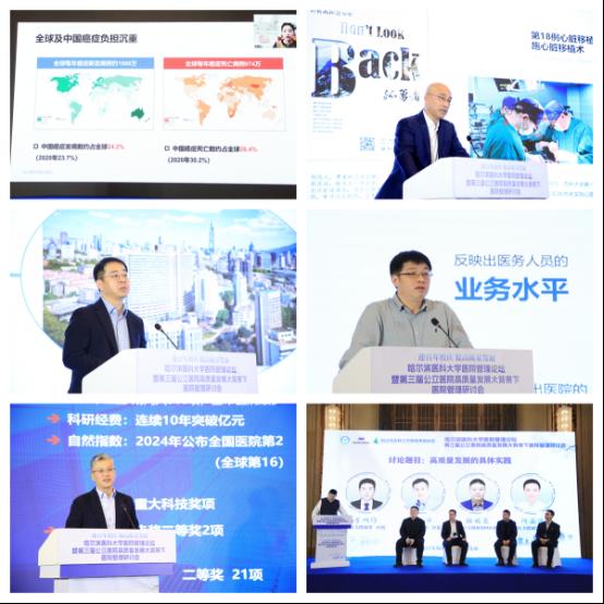 刘进在致辞中介绍我校在医院管理方面改革创新做法。他强调,各附属医院要紧跟国家政策导向,坚持以人民健康为中心,深入落实医改政策,建立健全现代医院管理制度,形成维护公益性、调动积极性、保障可持续的公立医院运行机制,不断提升医院管理水平,促进医院高质量发展。他表示,学校将持续搭建医院管理交流平台,各附属医院要通过平台互相学习借鉴医院管理方面好的经验和做法,为助力健康龙江建设和健康优先发展战略贡献哈医大力量。