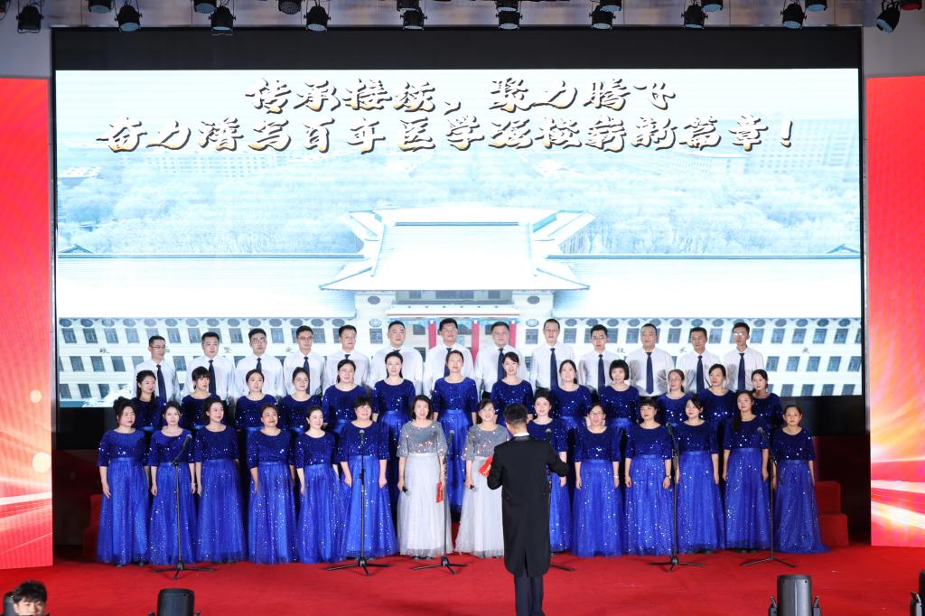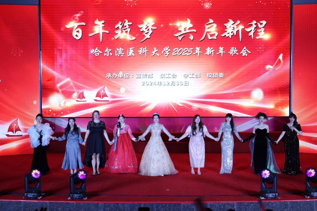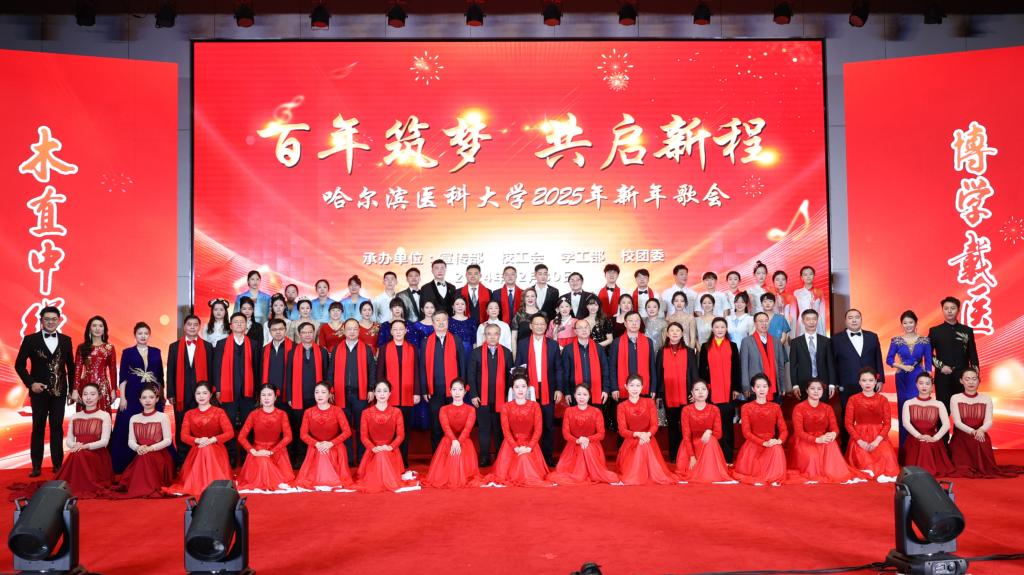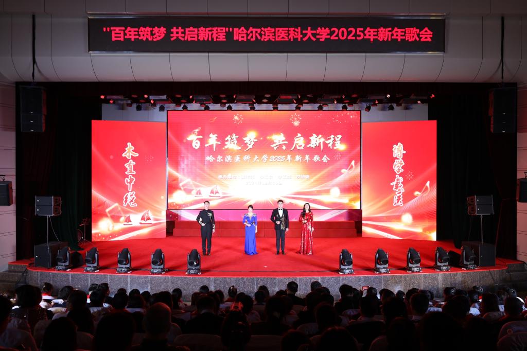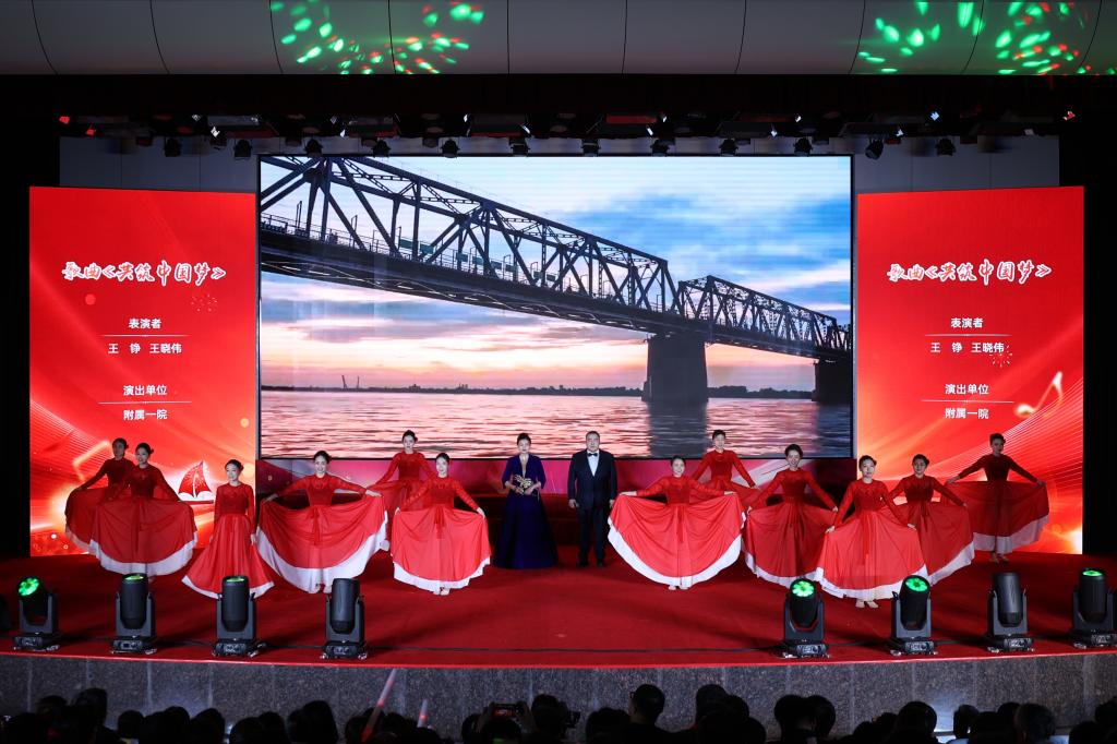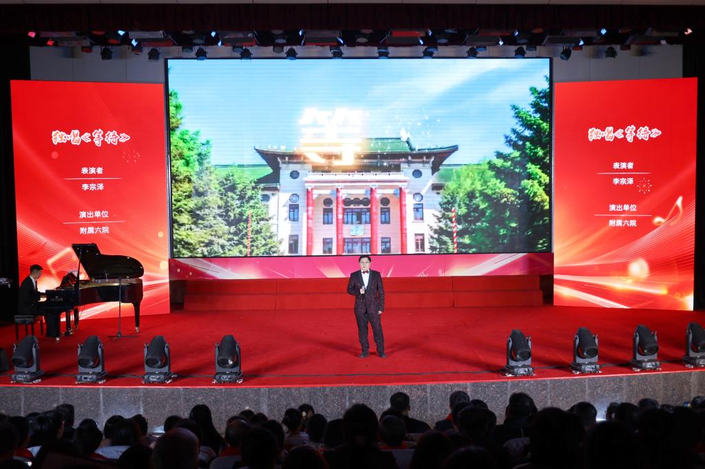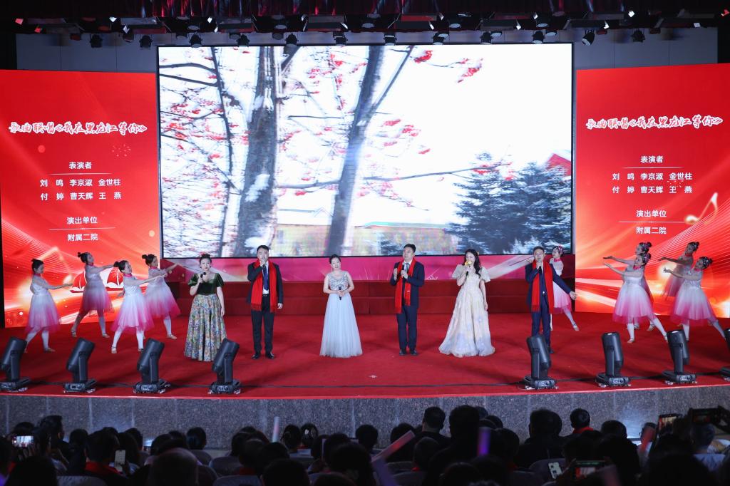 药学院演唱的《尔滨的雪》和附属二院带来的《我在黑龙江等你》展现了黑土文化的独特魅力与时代风采,传递了哈医人对家乡发展建设的坚定信心和美好祝愿。