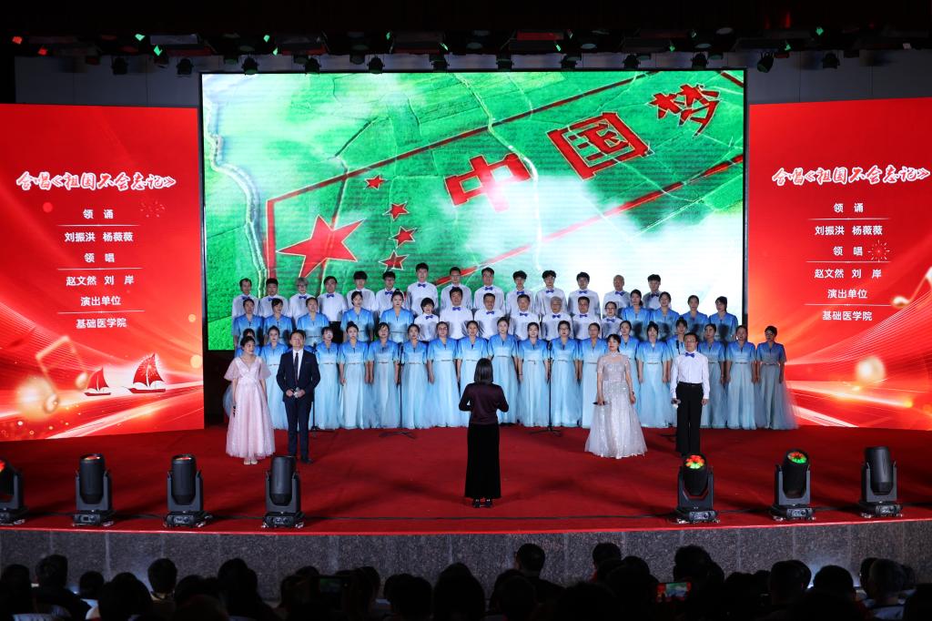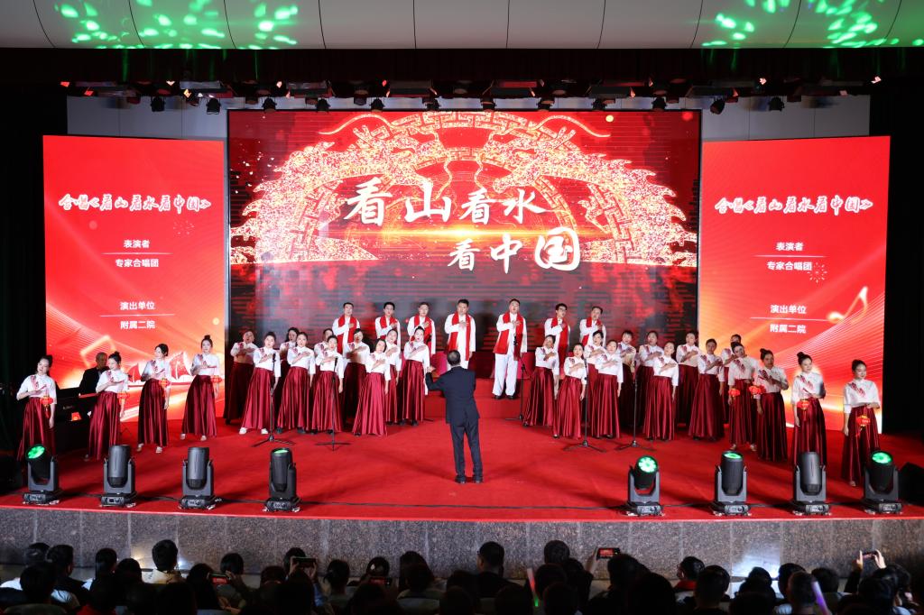 附属二院专家合唱团的《看山看水看中国》,大庆校区表演的红歌联唱《辉煌岁月》以及附属一院倾情演绎的歌曲《共筑中国梦》诉说了哈医人赤诚的爱党爱国情怀,唱出了哈医人对祖国盛世的深深自豪;基础医学院和马克思主义学院分别带来合唱《祖国不会忘记》和《我爱你中国》,奏响了新时代爱国主义最强音。