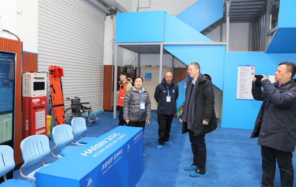 1月24日,春节前夕,第九届亚洲冬季运动会(亚冬会)冰上项目医疗官、哈尔滨医科大学附属第一医院院长孙备一行,来到第九届亚冬会开闭幕式场馆、冰上项目竞赛场地及冰上项目运动员村诊所,实地检查并指导医疗服务保障工作的落实情况。期间,孙备院长向所有医疗保障工作人员致以诚挚的节日问候与新春祝福。
