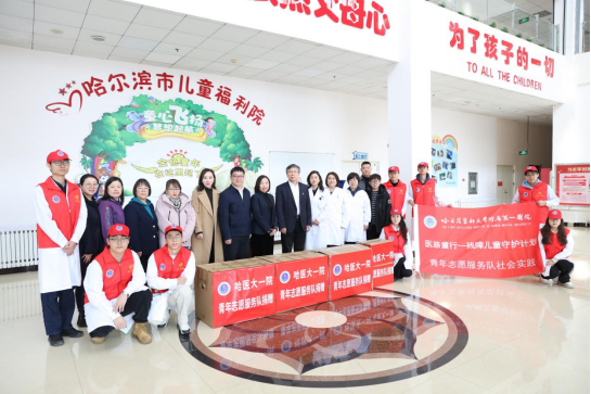 3月4日,在第62个学雷锋纪念日来临之际,哈医大一院师生志愿者走进哈尔滨市儿童福利院,为孩子们送上物资和关怀,用实际行动学习雷锋精神。