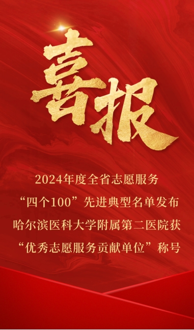 3月5日,中共黑龙江省委社会工作部公布了2024年度全省志愿服务“四个100”先进典型名单,哈尔滨医科大学附属第二医院荣获“优秀志愿服务贡献单位”称号。