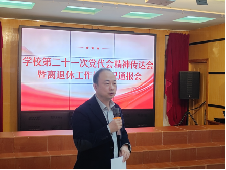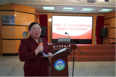 3月12日下午,离退休党总支组织召开专题会议,传达学习学校第二十一次党代会精神并通报离退休工作处近期工作情况。学校党委副书记金焰、地病中心副主任毕晓明、党委常委、宣传部长孙理出席会议。会议由离退休党总支书记、离退休工作处处长李英主持。