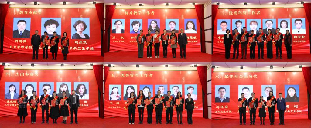 刘振华宣读《公共卫生学院、卫生管理学院关于表彰2023—2024年度先进典型的决定》,教育贡献奖、优秀教学工作者、优秀科研工作者、杰出参赛奖、优秀管理工作者、最佳社会服务奖共32人受到表彰。