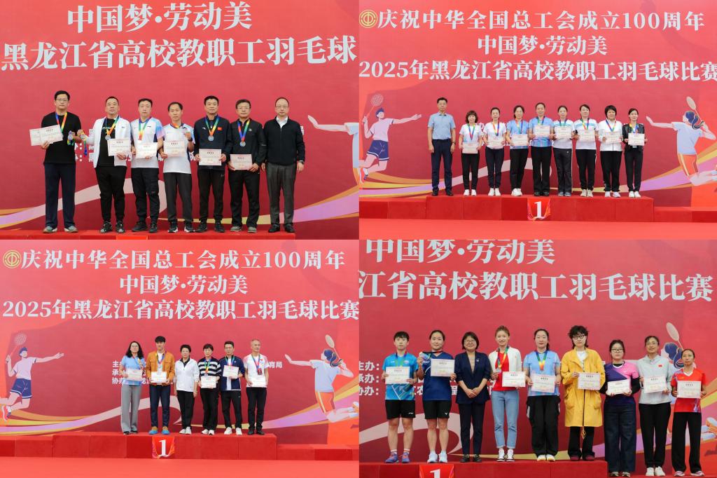 9月17日至19日,由省总工会、省教育厅、省体育局联合主办,省教科文卫体工会承办,黑龙江农业工程职业学院协办的“中国梦・劳动美——凝心铸魂跟党走 团结奋斗新征程”2025年黑龙江省高校教职工羽毛球比赛在哈尔滨举办。全省42所高校的536名教职工同场竞技,经过激烈角逐,我校代表队凭借顽强的意志和卓越的协作,历经多轮高强度对战,最终在多个组别中斩获殊荣。傅松滨、王大伟获得校长组男双冠军,金焰、陈红获得校长组双打亚军,周桂琴、杨秀贤获得工会组女双冠军,李丹铭获得职工组女单第三名。