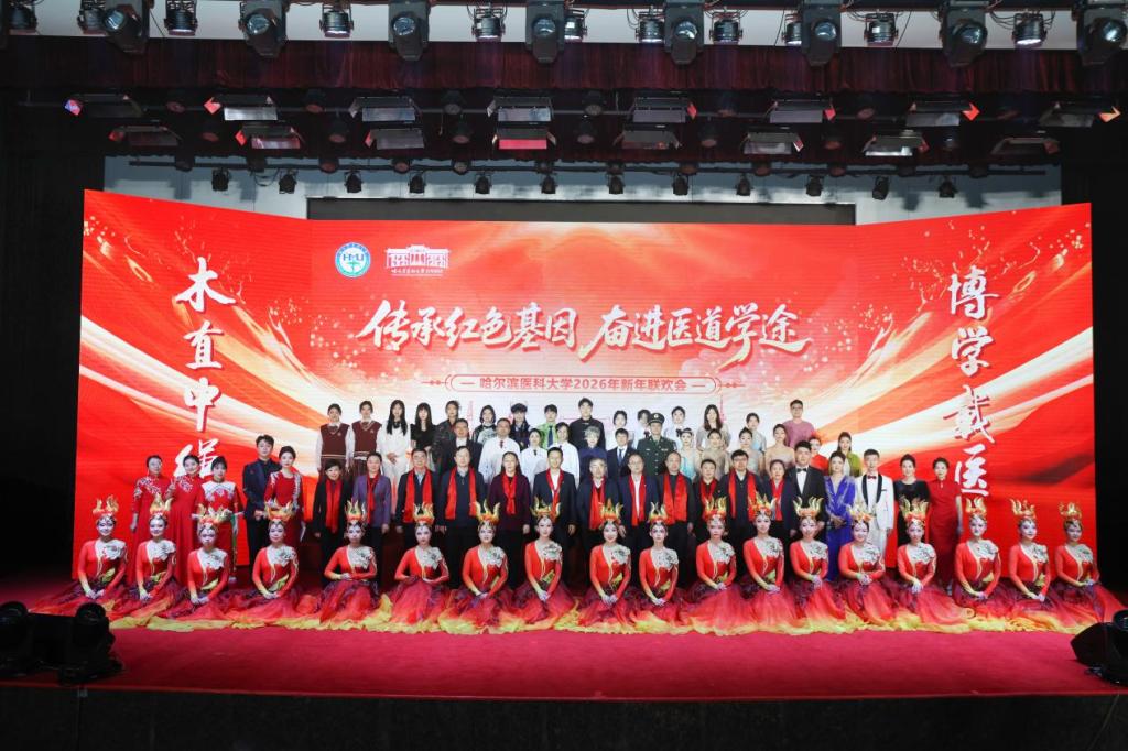 12月31日下午,“传承红色基因 奋进医道学途”哈尔滨医科大学2026年新年联欢会在学校主楼科技会馆圆满举行。学校党委书记张学、校长季勇及学校领导班子、师生代表欢聚一堂,共迎新年。