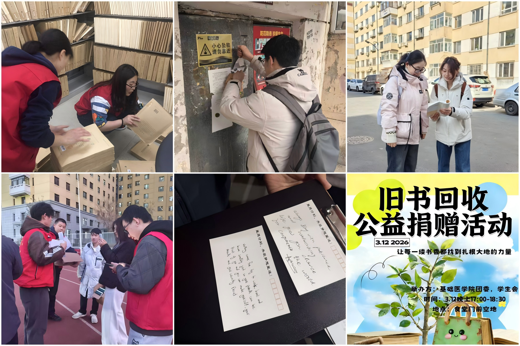 公卫学院学生前往哈尔滨市图书馆进行志愿服务活动,协助馆员进行图书整理和环境清扫工作;药学院学生走进医大社区清理公共区域垃圾杂物与墙面小广告,美化社区环境;人文学院学生发挥法学专业优势在医大家属区开展社区普法,提供法律咨询、普及法律知识、服务社区居民。生信学院学生在校园向同学们科普特殊儿童现状,收集大学生手写寄语并捐赠物资,为山区特殊儿童传递关爱。基础医学院发布“旧书公益捐赠活动”,通过回收校园废旧书本所得捐种树木,共同守护美丽龙江。