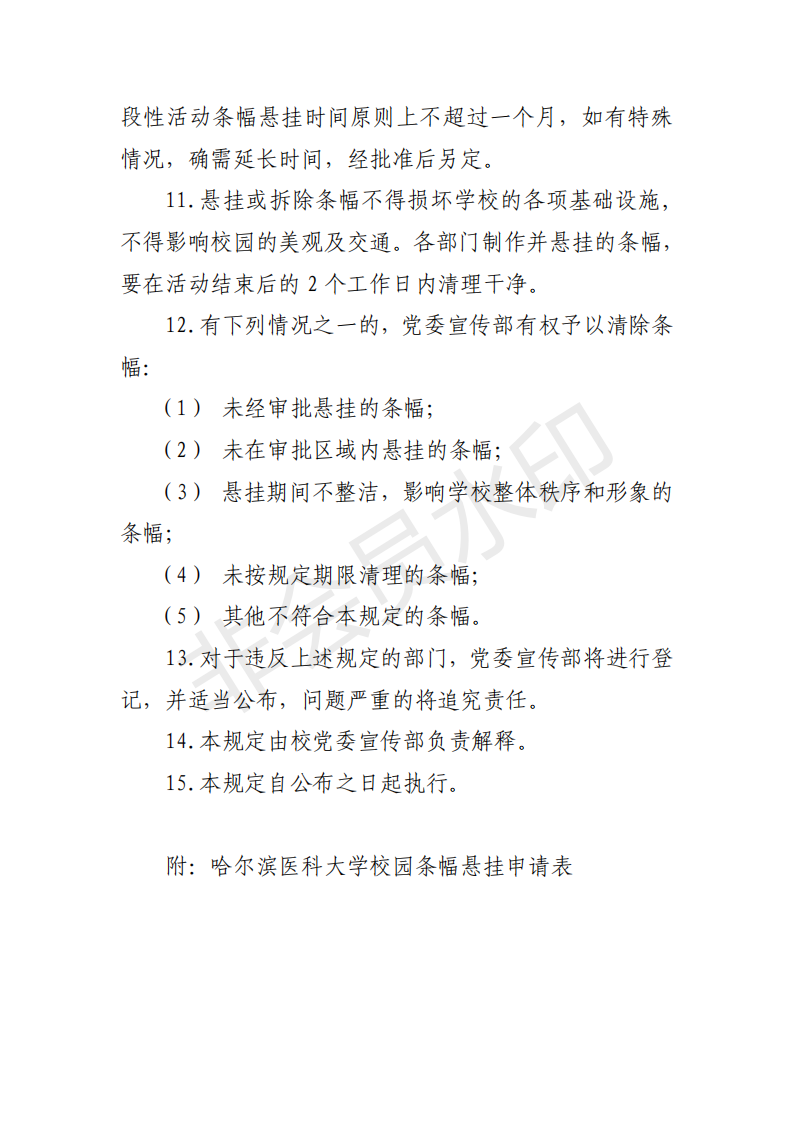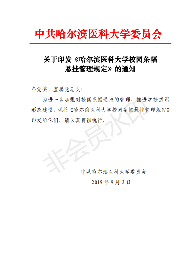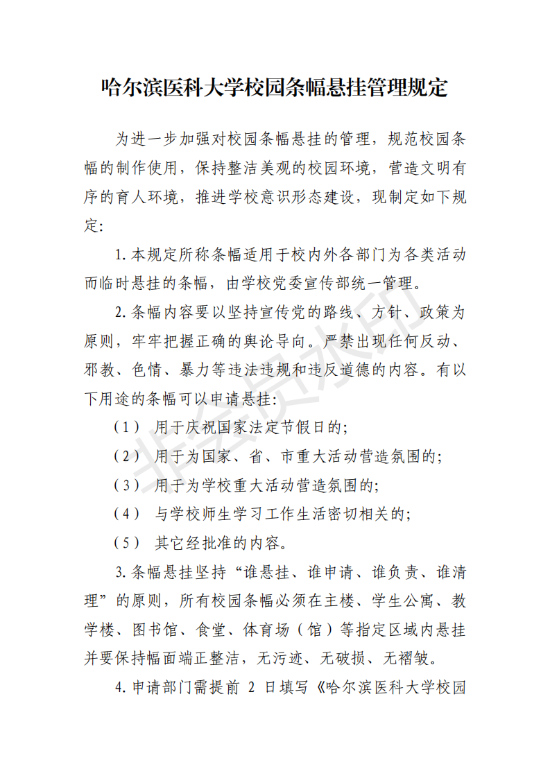 关于印发《哈尔滨医科大学校园条幅悬挂管理规定》的通知