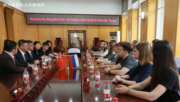 Chepel Tatiana和招生办主任Bortniyk Olga表示非常感谢我校的热情接待,对该校研修学生日前在我校附属第一医院的学习安排表示充分肯定。Chepel Tatiana欢迎我校师生赴俄罗斯远东国立医科大学参加各类学术活动和文化交流,表示俄方将在两校多年良好的合作成果基础上,继续以学生交流为基石,拓宽教师和学者之间的交流内容,为两校长久合作伙伴关系打下坚实基础。