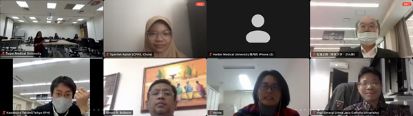 1月21日,由日本帝京大学主办的帝京大学-哈佛大学联合特别讲座暨公共卫生国际研讨会于ZOOM平台在线举行。来自美国、日本、中国、中国台湾、菲律宾、泰国等国家和地区的专家参加了研讨会。我校国际交流处处长杨丹、公共卫生学院副院长武丽杰及相关教研室专家在公卫学院二楼大会议室参加了视频会议。按照疫情防控要求,我校部分专家通过异地视频链接参加了会议。