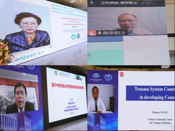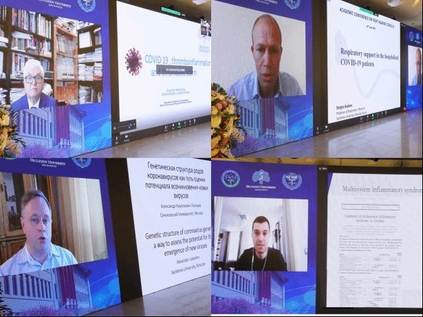 大会汇集了来自莫斯科国立第一医科大学、清华大学、北京大学、浙江大学、澳门科技大学、哈尔滨医科大学等多所大学的中俄两国医科院校的院士、著名专家学者以“线上+线下”的形式进行,参会人数两千余人。大会报告由黑龙江省医学科学院副院长张凤民教授,哈尔滨医科大学副校长、中俄医科大学联盟青年联盟中方主席许超千教授,莫斯科国立第一医科大学副校长丹尼斯·布纳鲁教授共同主持。中方由中国传染病诊治国家重点实验室主任李兰娟院士、中俄医科大学联盟中方主席杨宝峰院士、清华大学医学院讲席教授程京院士、中药质量研究国家重点实验室主任刘良院士、北京大学人民医院院长姜保国教授;俄方由俄罗斯妇产科协会副主席亚历山大·马卡特察里亚院士,俄罗斯联邦卫生部首席肺病专家谢尔盖·阿夫迪夫院士,莫斯科国立第一医科大学寄生虫学、热带和媒介传播疾病研究所所长亚历山大·卢卡舍夫院士及儿科传染病学主任丹尼尔·蒙布利特教授分别做了专题报告。双方专家汇聚于云端就新冠肺炎防治的新思路、新方法及发展中国家的创伤急救体系进行了深入的交流。