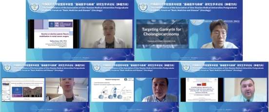 谢切诺夫大学内窥镜医学系主任巴普洛夫·巴维尔·弗拉基米罗维奇副教授、外科系因娜·图莉娜副教授、放射肿瘤与整形外科系切列米索夫·瓦季姆副教授以及哈尔滨医科大学附属肿瘤医院消化肿瘤内科二病房主任兼一期临床研究病房主任郑桐森教授、哈尔滨医科大学附属第一医院卫健委细胞移植重点实验室副主任兼肝脾外科教育部重点教研室副主任范会涛教授进行了精彩的学术前沿分享。