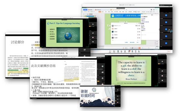 针对线上教学课堂的设计,学院领导、督导老师、课程组教师和教学管理人员反复集体备课,磨合演练,推出了适合线上课堂的教学内容和模式。口腔医学英语云课堂以新教材为基础,将线上课堂分为课程前期预习、课上讲解互动、课后作业复习三个阶段。班级同学合理分组,以小组为单位布置预习作业,课堂上将教师讲授与翻转课堂有效结合,轻松有趣的互动模式,使同学们在学习知识的同时,也享受着学习带来的快乐。教师们针对学生反馈不断调整课堂设计,不断丰富预习任务与课后作业,不断总结每堂课的经验教训,不断打磨教学内容,不断提高教学能力……一堂课的线上教学,从课前设计,到任务分解、布置预习任务,再到课后作业的批改,需要付出比平时线下课程更多的时间和精力,但这一切的付出与努力,都因为课程组的年轻教师们有着共同的信念而变得熠熠闪光。