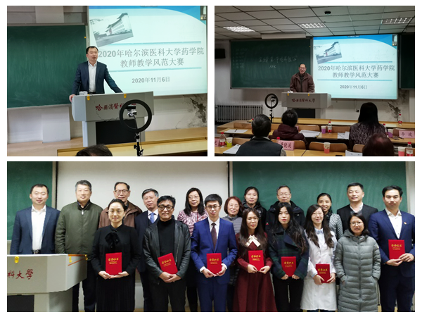 11月6日下午,药学院举办了2020年哈尔滨医科大学药学院教师教学风范大赛。旨在深入贯彻落实全国教育大会和新时代全国高等学校本科教育工作会议精神,全面落实新时代教育教学工作会议和学校第二十次党代会精神,以本为本,推进“四个回归”,营造良好的教学氛围,增强教师教书育人的荣誉感和获得感,鼓励广大教师潜心教书育人,促进教师教学能力的进一步提升,助力学校一流本科教育振兴。