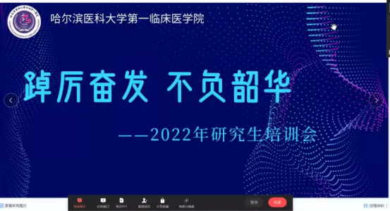 为贯彻落实学校研究生管理工作会议精神、常态化从严抓好疫情防控工作,4月22日,哈尔滨医科大学第一临床医学院研究生培训会在哈医大一院网络远程会诊中心线上召开。