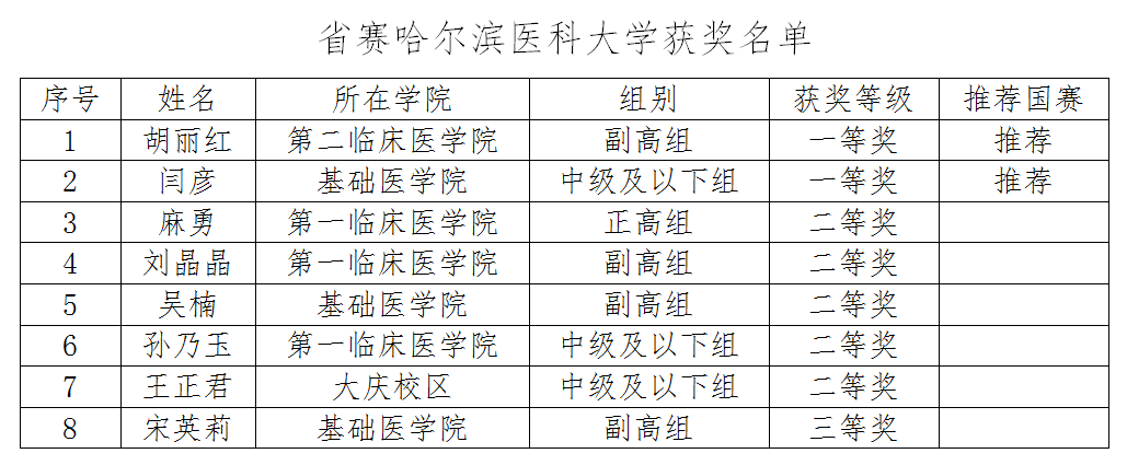 省赛哈尔滨医科大学获奖名单