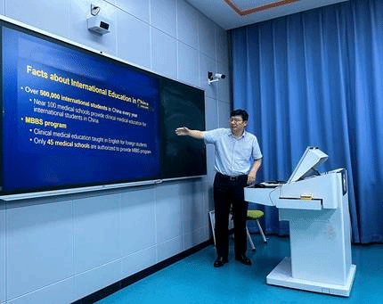 为进一步提高学校全英文授课教师的教学能力,国际教育学院于7月8日举办了全英文授课教学能力提升培训会,会议以线上线下结合的方式进行,来自我校和同类医学院校的近300名教师参加了培训。会议由国际教育学院副院长宋向秋主持。